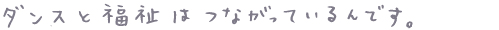 ういう意味で、コンテンポラリダンサーにとっては、職場はいい刺激の場となっています。それをそのままダンスに生かせるわけじゃないけれど、「なんか楽しさって人それぞれでいいんだ!」と思わされます。いいなぁそれって、自分だけ楽しいっていいなぁって。毎日そういうことで笑えるのもいいんですよね。障害者の方と一緒にいる時間は、ダンスにとってきっと無駄にはならないと思っています。だから私の中では、ダンスと福祉はつながっているんです。
