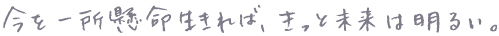 の間、ニチジョ生のソフトテニス部の試合を見に行って、「この一瞬にかけろ!」という横断幕が掲げられていました。みんなこれ以上出せないくらい大きな声で応援していて、「ほんとにこの一瞬にかけているんだな。」と思いました。あれくらい今を一所懸命生きられれば、きっと未来は明るいと思います。